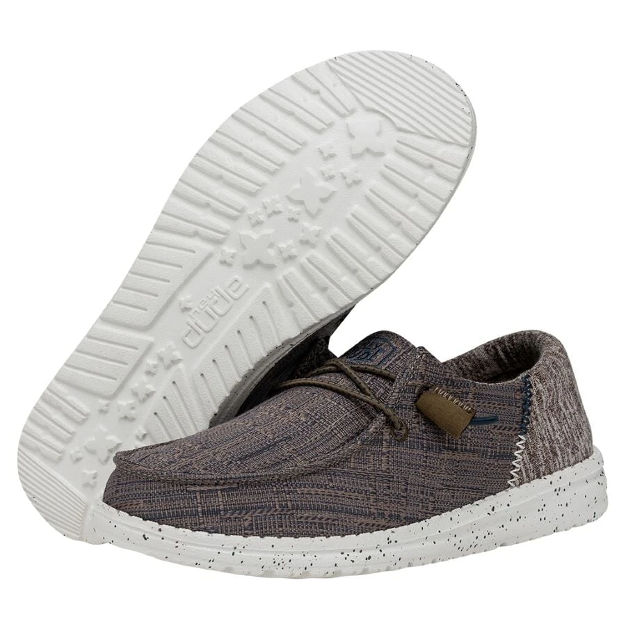 Shake up your essentials with the slipper-like comfort of the Wendy Funk Slub Blanket collection. A HEYDUDE classic with a patterned heel detail for extra funk in every step. A woven, polyester-blend upper comes together, lined with a breathable cotton lining for strides that can’t be stopped. Finished off with an lightweight foam outsole that keeps the spring in your step. If we’re making blanket statements: this shoe is festiva-legit.
