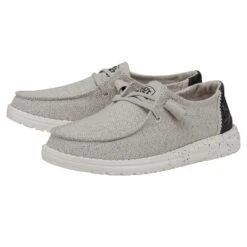 Introducing our classic HEYDUDE style, and a cousin to our original Wendy Knit. The Wendy Knit II collection features our classic moc, constructed with a textured, patterned, stretch-knit woven upper. Lined with a soft, cotton-blend lining for extra comfort. Add an ultralight outsole with no-tie, elastic laces and you’re basically walking on air with ease.